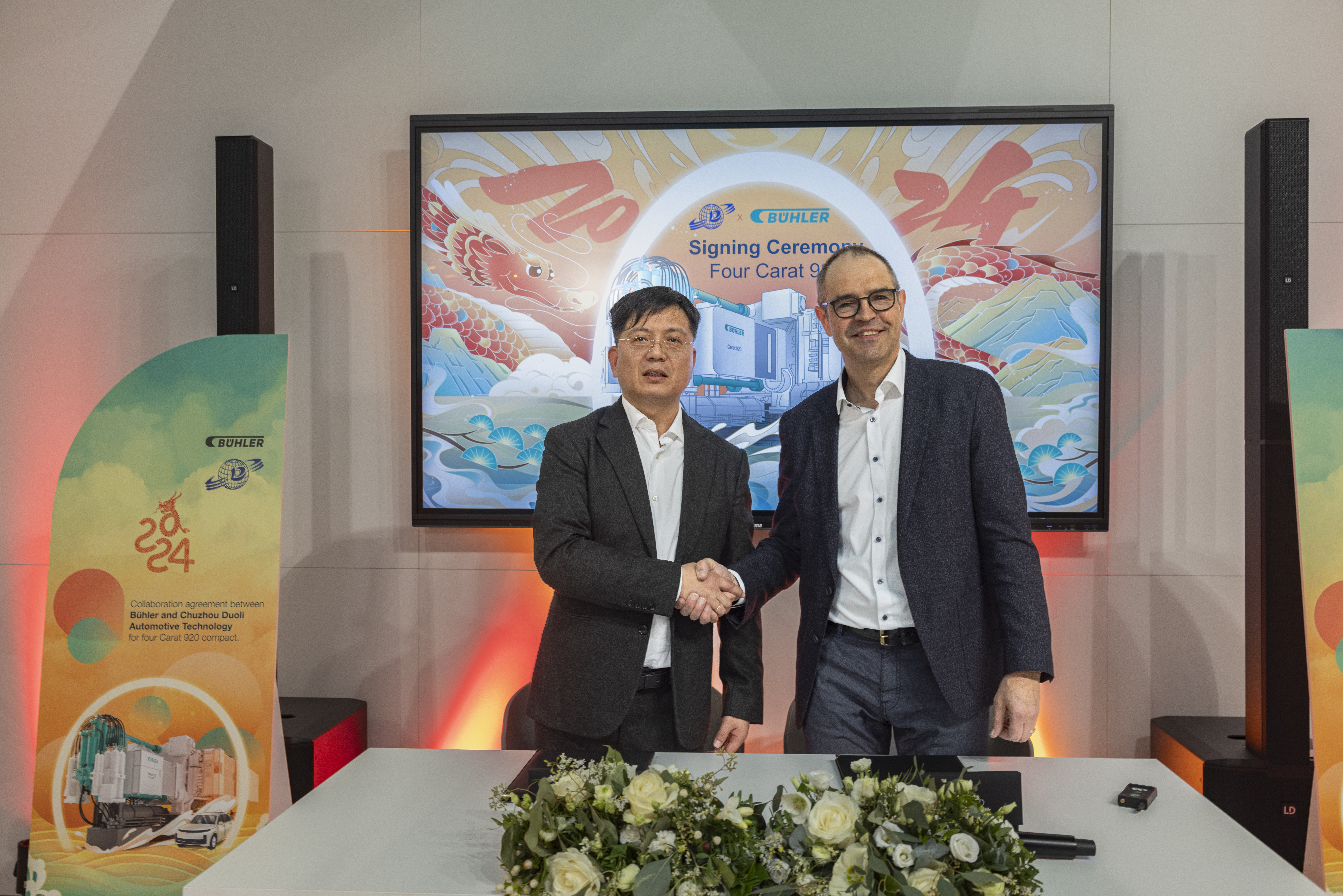 Wuxi (China), Nuremberg (Germany), January 19, 2024 – Chinese car parts supplier Duoli Technology and Swiss technology company Bühler Group have signed a new contract for the delivery of four new Carat 920 megacasting cells. The deal represents one of the largest single orders for Bühler Group’s megacasting business and is testament to the accelerating trend towards the production of large structural car parts for electric vehicles and an endorsement of Bühler’s expertise in delivering outstanding die-casting solutions.